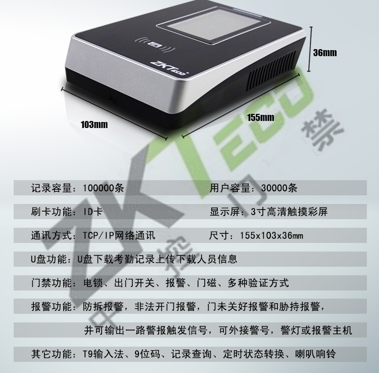 門禁功能:電鎖、出門開關、報警、門磁、多種驗證方式