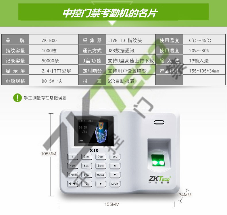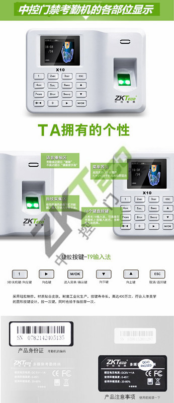中控X10考勤門禁