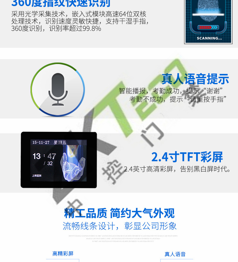 JC-608S指紋考勤機 高清彩屏打卡機